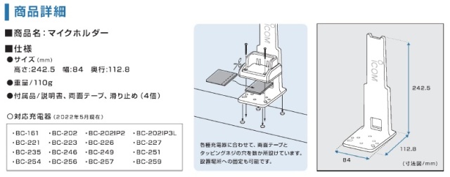 TOP アマチュア無線 アイコムオプションその他 メーカーで選ぶアイコム アイコムオリジナルグッズ 店舗受取OK マイクホルダー MIC HOLDER 価格: ¥1,100 (本体 ¥1,000、税 ¥100) [ポイント還元 11ポイント~] 販売期間: 数量: 個 在庫 在庫切れ 返品についての詳細はこちら マイクロホンの固定に ケーブル・コード収納に!