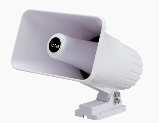 IC-M330Jを当店でお買い上げいただくと、ご希望の方にSP-37ホーンスピーカーを無償サービスいたします。フォグホーン(汽笛)機能、およびヘイラー機能用のスピーカーです。