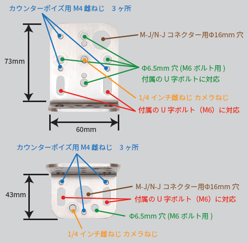マルチユースアンテナ取付金具 (1/4インチカメラねじ付属)