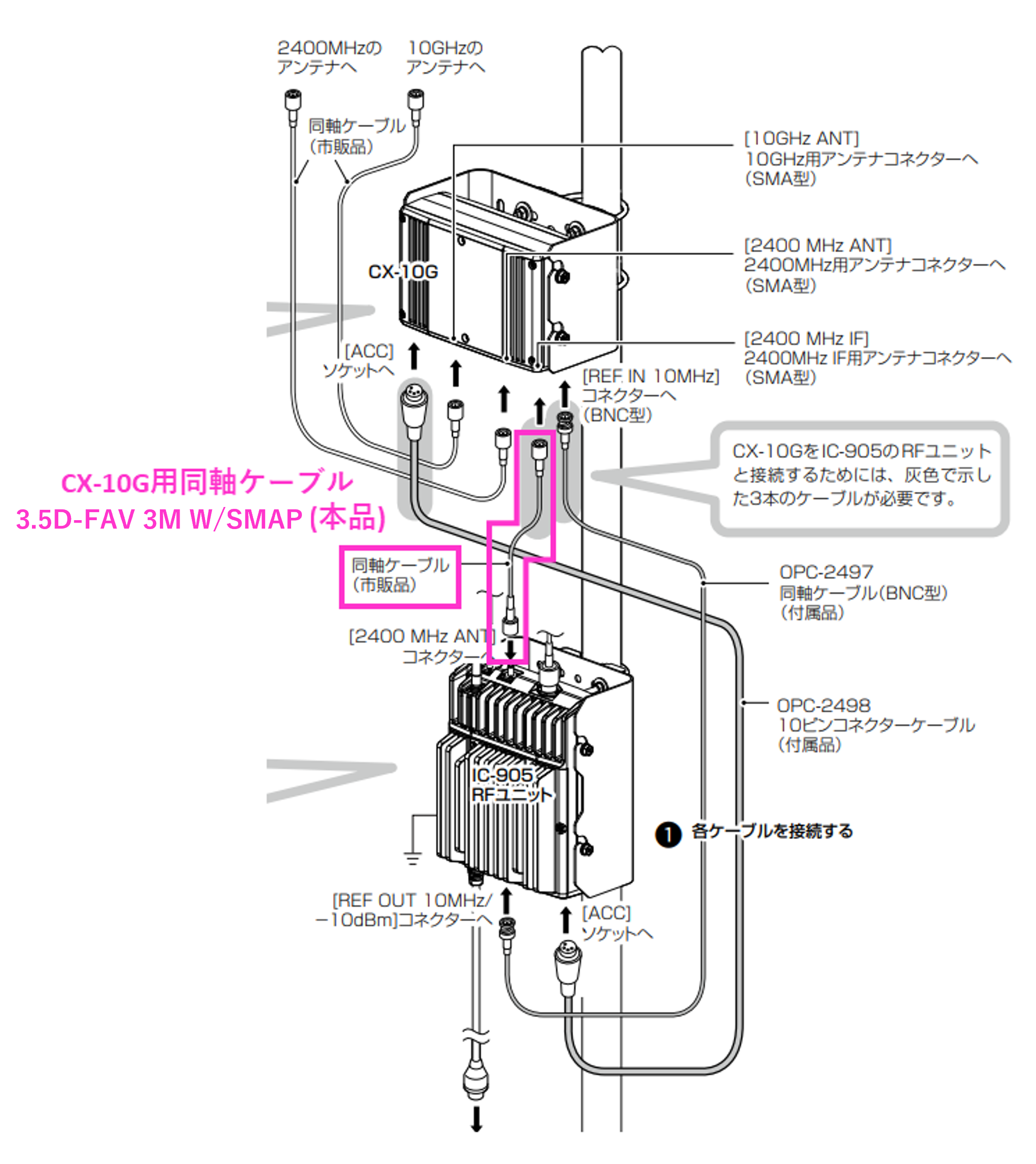 CX-10G用同軸ケーブル 3.5D-FAV 3M W/SMAP